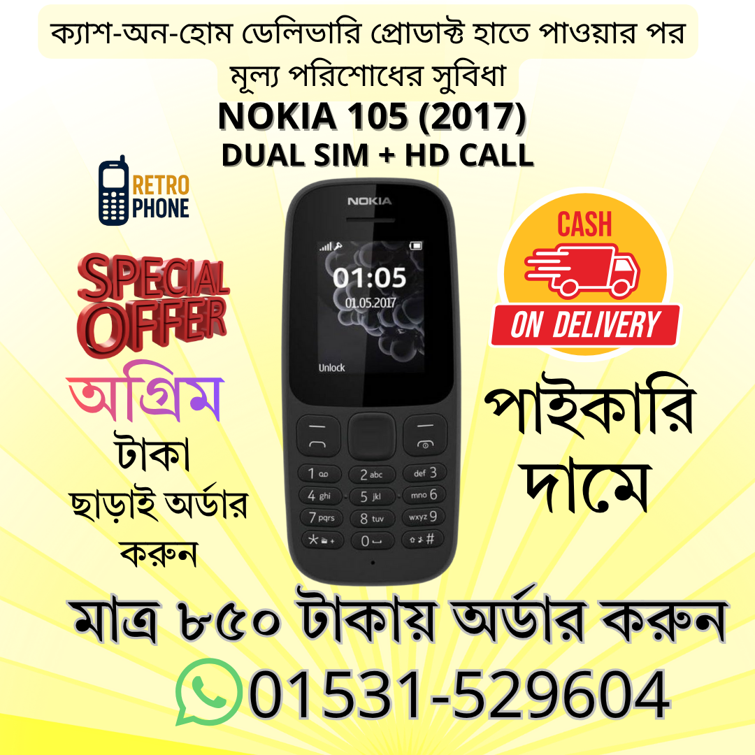 নোকিয়া ১০৫ কথা বলার জন্য এবং রাফ ইউজ এর জন্য ভালো মানের মোবাইল। এতে দুই সিম সাপোর্ট করে এবং কথা বলার জন্য সেরা একটা সেট সকলের পছন্দের। নোকিয়া ১০৫ (২০১৭) আমাদের স্টকে অরিজিনাল রিফার্বিশড কন্ডিশন এর রয়েছে।
